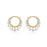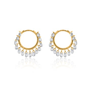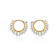 This stunning pair gives justice to the heavenly craftsmanship with cascading briolette diamonds on one side, creating a chandelier effect by attaching them to each disc.