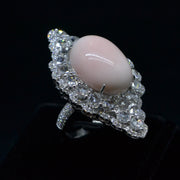 Our Coral Blush ring has a multitude of round rose-cut diamonds strewn like shells with a marvelous coral stone in the center amalgamating the elements of nature and industry.