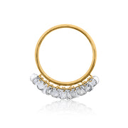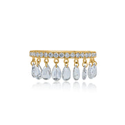 Surrounded by briolette diamonds in a beautiful setting, this ring is a promise of truth, love, and royalty.